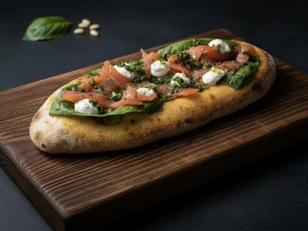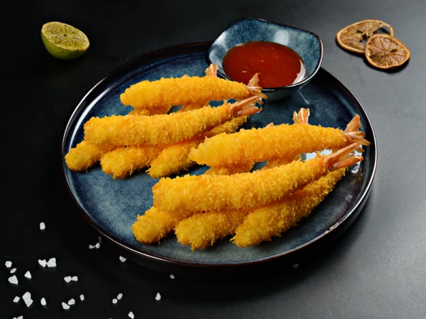 Тигровые креветки, рукола, огурец, авокадо, фирменный сладко-острый соус васаби (8 шт.)